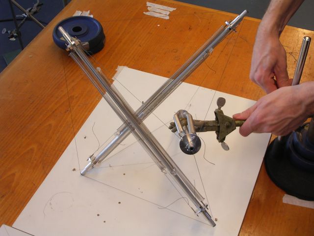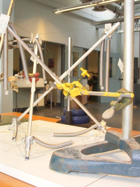 Selection of images of assembly the prototype. The structure needs to be firmly fixed before the springs are tensioned.